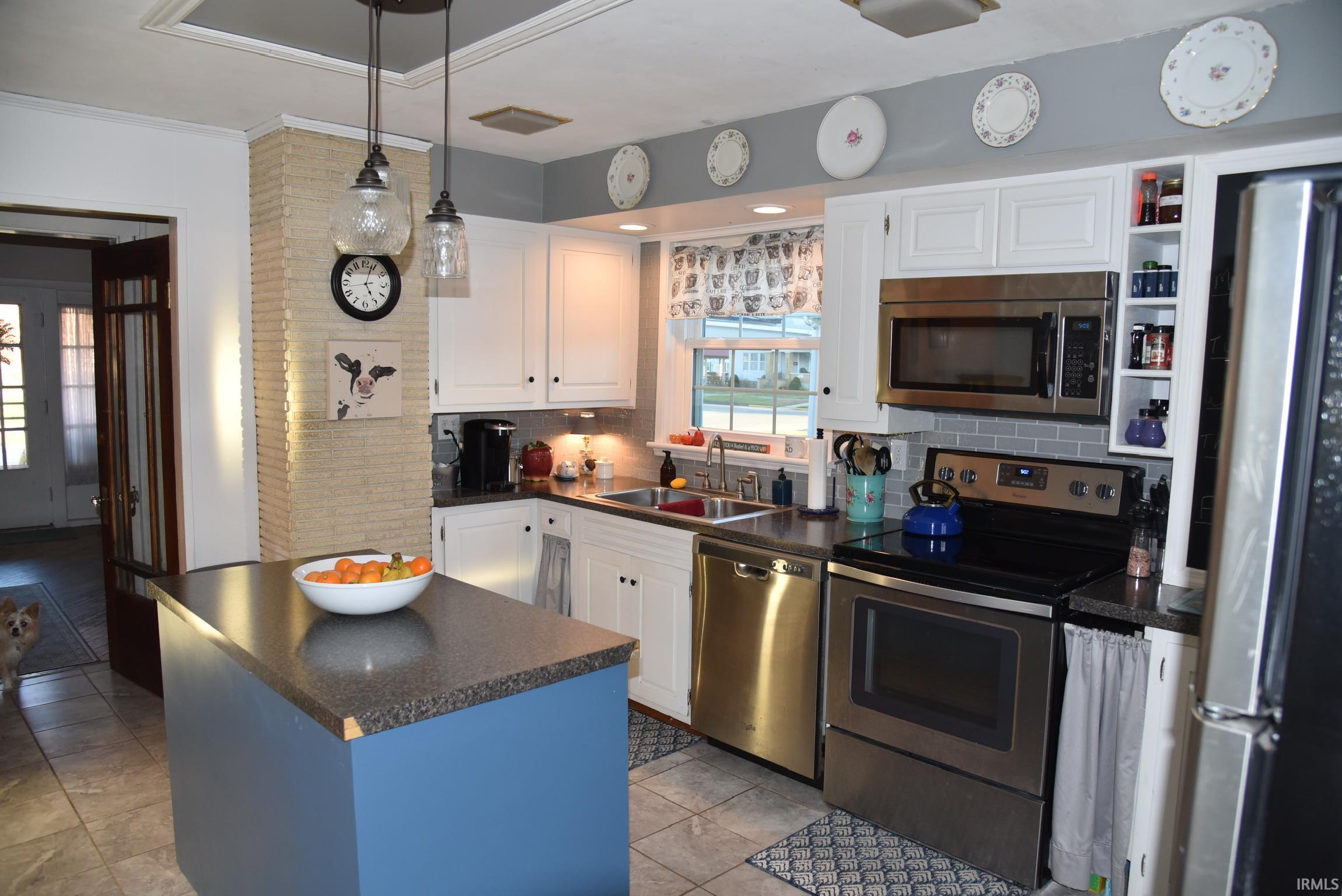 Beautifully updated charming historic home with covered front porch. Heated hardwoods on the main with a cozy wood burning fireplace with attached bookshelves on each side. Kitchen is updated with a nice island with storage. New paint throughout. 3 bedrooms, 2 baths, large laundry room on the main . Dinette with built-ins, walk in closets and storage space galore. Attached 1 car garage with workshop. Separate cottage includes Living room, bedroom, and kitchen with heat, air conditioning and some appliances.